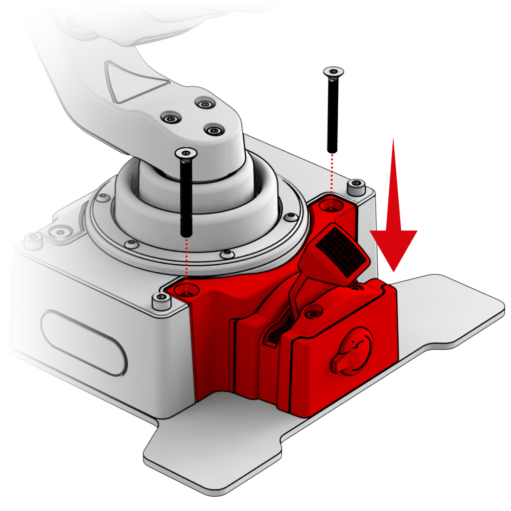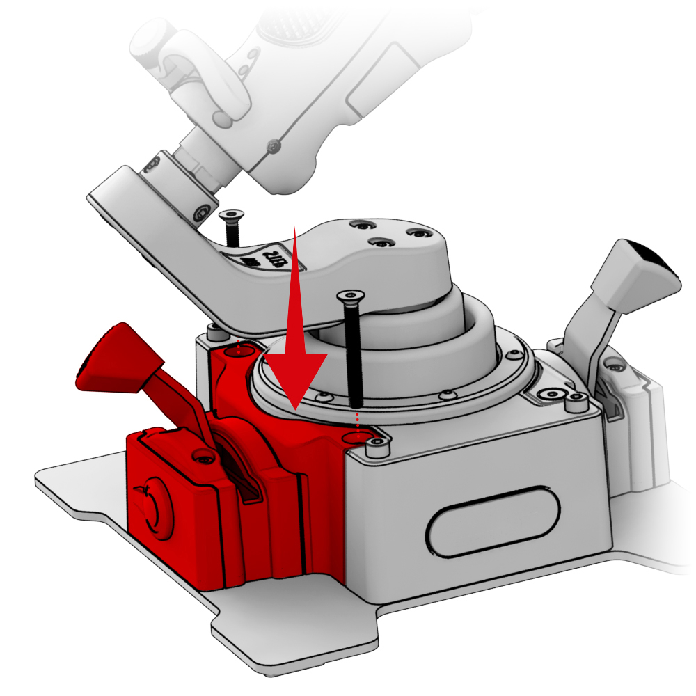 2. Install the base on the bracket plate and secure it with the screws that come with Desk Mount Adapter - CDT-AEROMAX Flightstick.