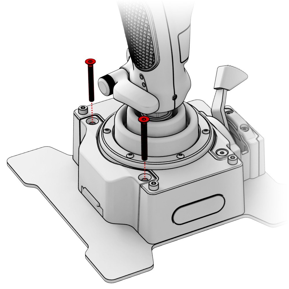 2. Install the base on the bracket plate and secure it with the screws that come with Desk Mount Adapter - CDT-AEROMAX Flightstick.